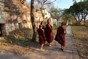 Morning breakfast at hotel. Short drive to Amarapura and visit Mahagandayone monastery: school for 1200 Buddhist monk. The most interesting time to visit that monastery is at 10:15am when all monks enter to dining room for their lunch. Then visit traditional hand woven silk workshop. Visit the village in which all villagers make different items made of clay that we still use in our daily life. Proceed to Innwa. an artificial island, one of the ancient capitals of Myanmar and visit Bagaya monastery, Menu Ok kyaung and ruin of Innwa by horse cart . Then drive to Sagaing. Visit to top of Sagaing Hill for beautiful panorama over Ayeyarwaddy river and holy hill, stop at  monastic education center to see how Myanmar children survive to study. Drive back to Amarapura and visit U Bein bridge (during sunset time) which is the longest wooden bridge in the world. Then drive to Mandalay. Overnight at Mandalay.